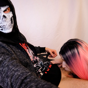 Blowjob without hands, mouth full of cum.