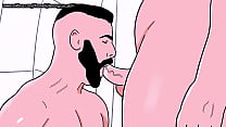 Bearded straight man sucks a male bottom's ass ...