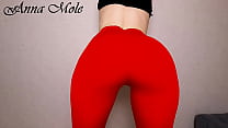 PAWG in red leggings and high heels wags her as...