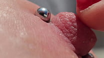 Playing Pierced Nipples Close Up on Balcony