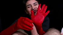 Cum on red opera gloves