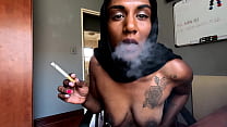Desi in hijab smoking while wearing nipple clamps