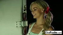 Teen Elsa Jean fucks a masked stranger in an al...