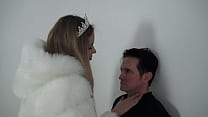 Tall princess Kelly cSlave Bobby against the wall.