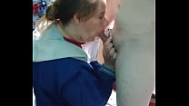 Amateur en el depósito: chupada y sexo de pie