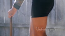 cute latina cleaning the hose and getting hot f...
