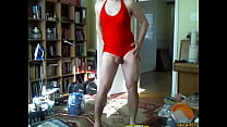 hoovering in sexy thong leotard