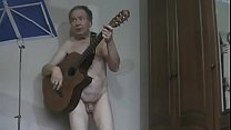 Naked and showing off.