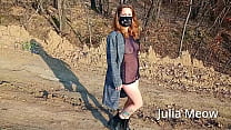 Teen in yellow raincoat flashes pussy outdoors ...