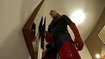 Huge cock makes a ton of sperm over latex catsuit