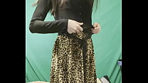 Cute femboy in skirt cums while taking thick dildo