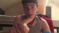 Butt pirate twink grabs his cock and a dildo fo...