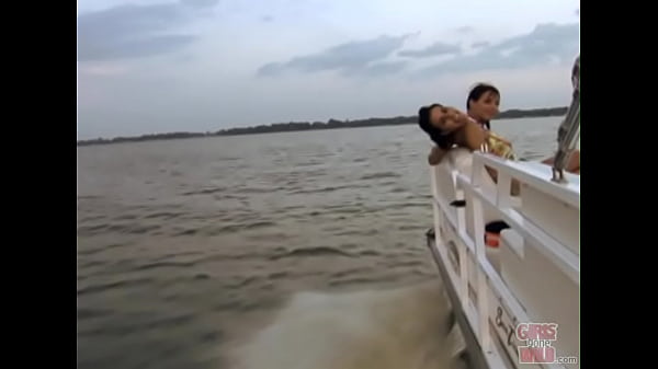 Petite brunette pleasure herself on a boat