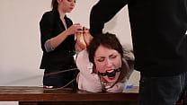 Barefoot Vanda first time hogtied and ballgagged