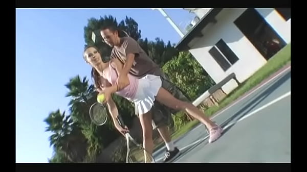 Cheerful brunette in a short skirt gives a guy ...