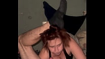 Redhead gobbling down a meat shaft