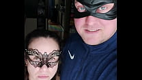 Pretty woman in a cat mask sucks a big cock and...