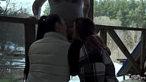 Horny Brunette teen Sucks and Strips Outdoors -...