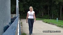 Blonde takes off shorts and pees on the stairs (5 min)