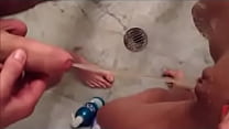 Mijando de pica dura e gozando no final