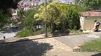 Newbie slave suspended in public (5 min)