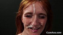 Spicy peach gets cum load on her face swallowing all the sperm (5 min)