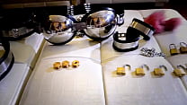girl in female mask and latex self-bondage Cha...