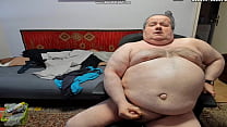 Ursão gordo gostoso batendo uma punheta e gozando