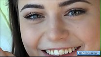 Sensual brunette teen amateur Adria fuck her juicy pussy on the table with a massive sex dildo (4 min)
