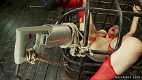 Gagged brunette fucked in bondage threesome (5 min)