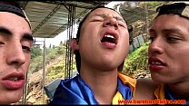 Bottom twink and his boyfriend bare fuck hard outdoors (7 min)