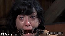 Fastened up beauty receives tongue and facial t. (5 min)