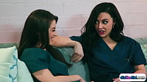 Petite brunettes give oral and lick ass (6 min)