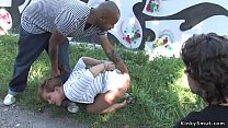 Ebony spanked and fucked in public shop (5 min)