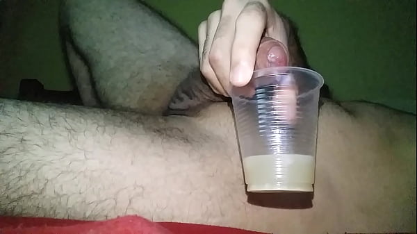 Nice cum in plastic tray after wanking for 4 hours (35 sec)