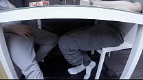 The loser of an amateur wrestling match has to submit to piss desperation, hands tied up (huge load of pee) (30 sec)