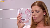 Filled up two Glasses by My Strong Stream Pee and next Put in My Mouth and Spitting on my Big Tits (5 min)