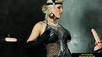 Strapon wielding lesbian at gloryhole getting bukkake (9 min)