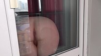 Curvy Girl washes her huge tits with soap and rubs them on the glass (16 sec)