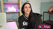Busty Spanish redhead Lidia Crespo meets our BIG COCKS: Are you ready for porn, babe? (5 min)