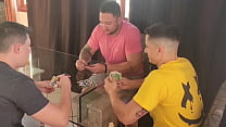 Meu marido chamou alguns amigos para jogar cartas e eu dei um jeito de foder com os 3. Parte 3 !! Completo no Red. (8 min)