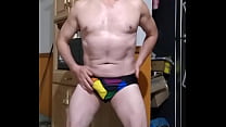 Baile sensual iniciando en tanga y terminando desnudo y eyaculando. (6 min)