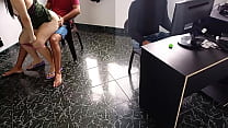 El cornudo de mi esposo gana su partida en la computadora mientras a mi me folla su mejor amigo a sus espaldas: despues de ver que esta entretenido dejo que me cojan por detras (13 min)