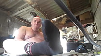 chubby exhibitions his foot and cumshot outdoor (6 min)