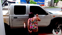 Outdoor public sex with 2 trans and a big dildo in the deep ass, exhibitionism on the night street (5 min)