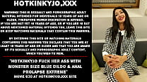 Hotkinkyjo in amazing green dress self anal fisting, prolapse & long multiball black dildo (59 sec)