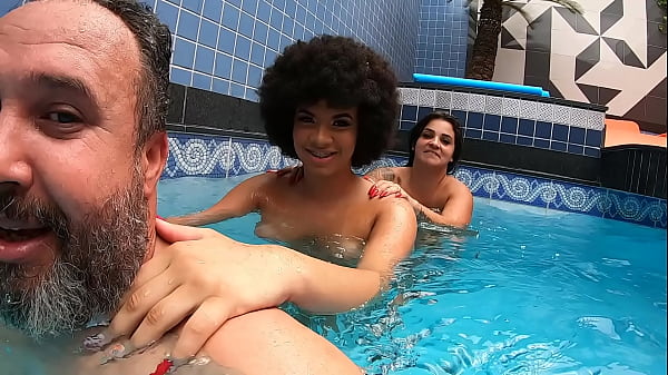 Gih Rocha e Cristine Castelary festa com duas gostosas na beira da piscina (32 sec)