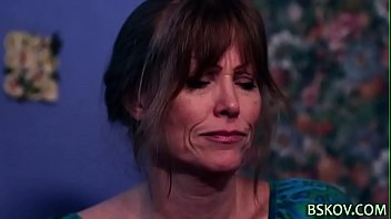Guys shoot cum onto a thin mature woman