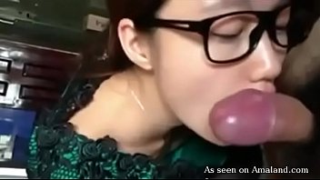 Hot brunette Asian sucks cock