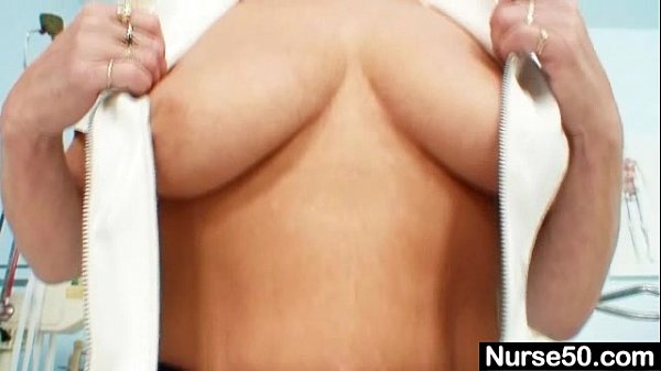 Grandma in uniform spreads blond hairy pussy 5 min